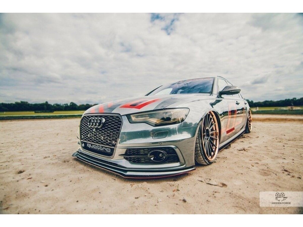 Přední RACING spoiler AUDI A6 C7 S-LINE (2 splitters = 1 set), povrchová úprava černý lesklý plast ABS.