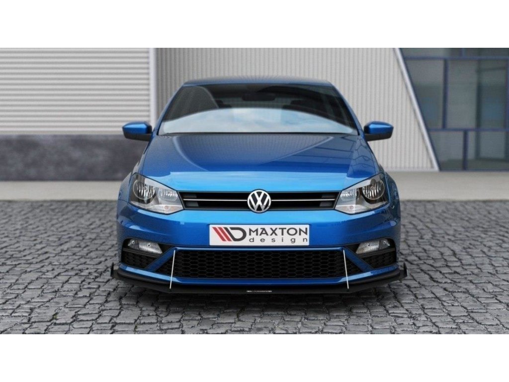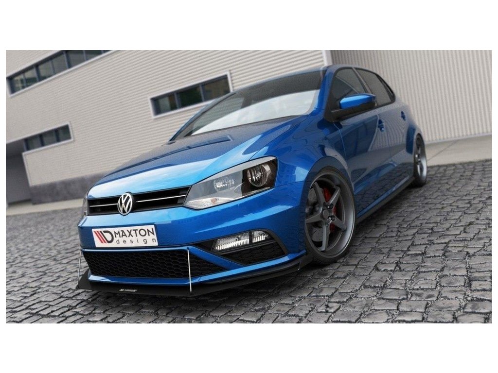 Maxton Design "Racing" spoiler pod přední nárazník pro Volkswagen Polo GTI Mk5 Facelift, plast ABS bez povrchové úpravy, s křidélky