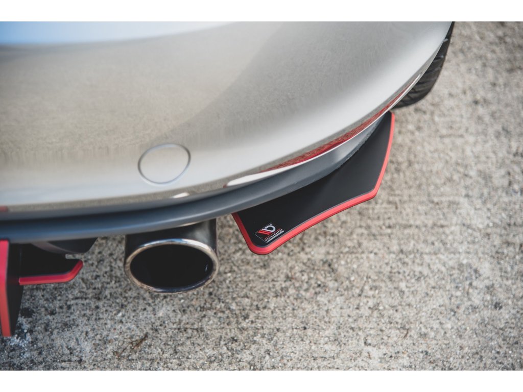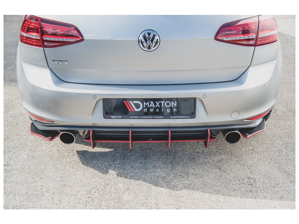 Maxton Design "Racing durability" boční difuzory pod zadní nárazník ver.2 pro Volkswagen Golf GTI Mk7, plast ABS bez povrchové úpravy, s červenou linkou