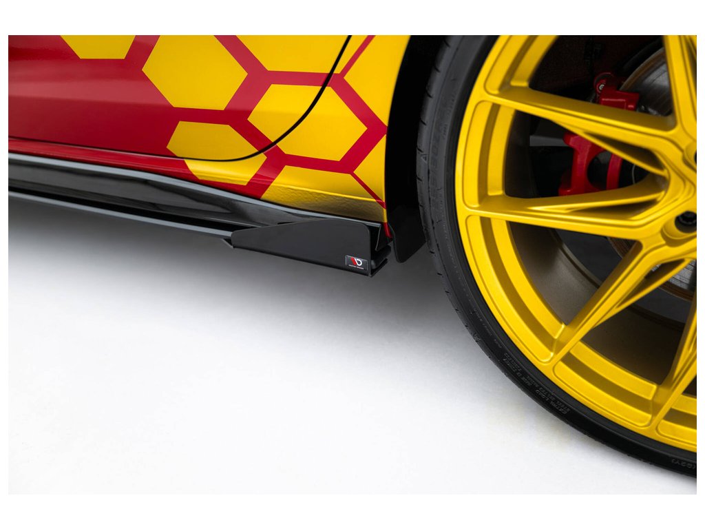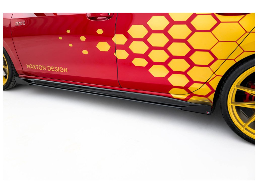 Maxton Design "Racing durability" difuzory pod boční prahy s křidélky pro vozidlo Volkswagen Golf GTI Mk8 Facelift . Povrchová úprava spoileru plast ABS bez povrchové úpravy.