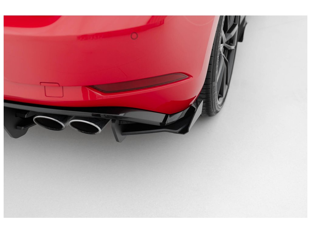 Maxton Design "Racing durability" difuzory pod zad. nárazník s křidélky pro vozidlo Volkswagen Golf R Mk7 Facelift . Povrchová úprava spoileru černý lesklý plast ABS.