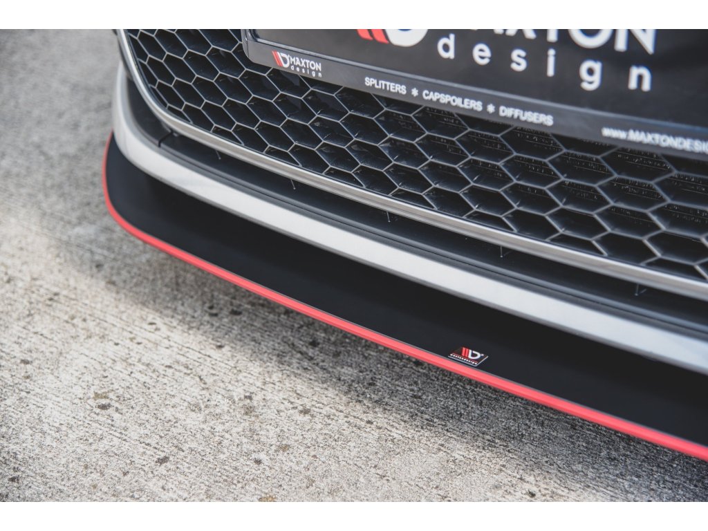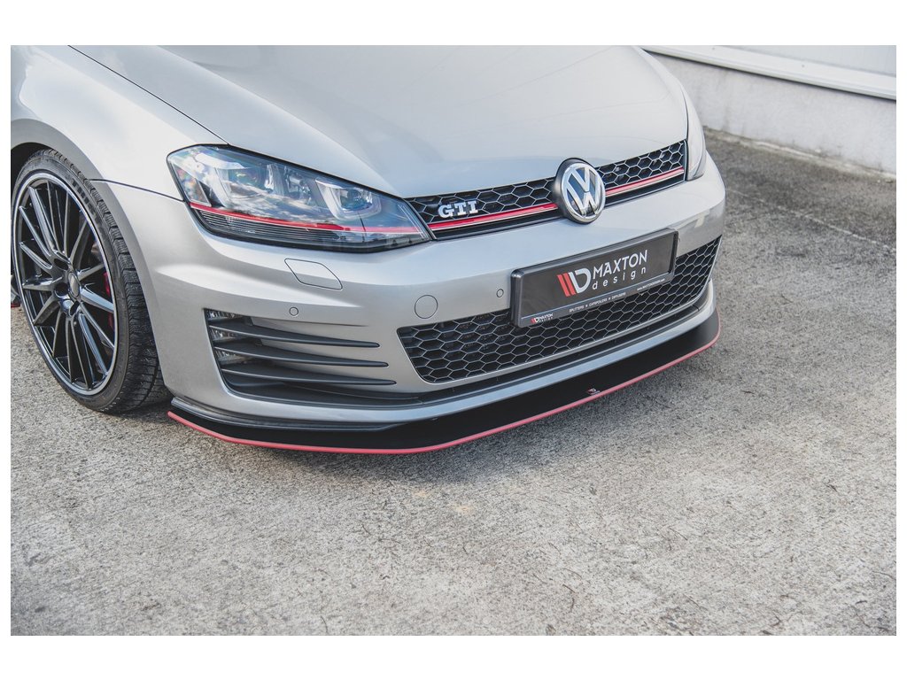 Maxton Design "Racing durability" spoiler pod přední nárazník pro Volkswagen Golf GTI Mk7, plast ABS bez povrchové úpravy, s červenou linkou