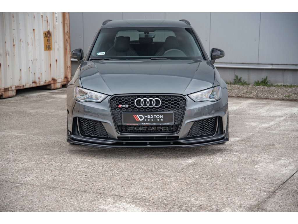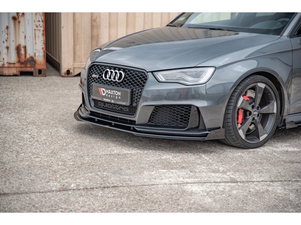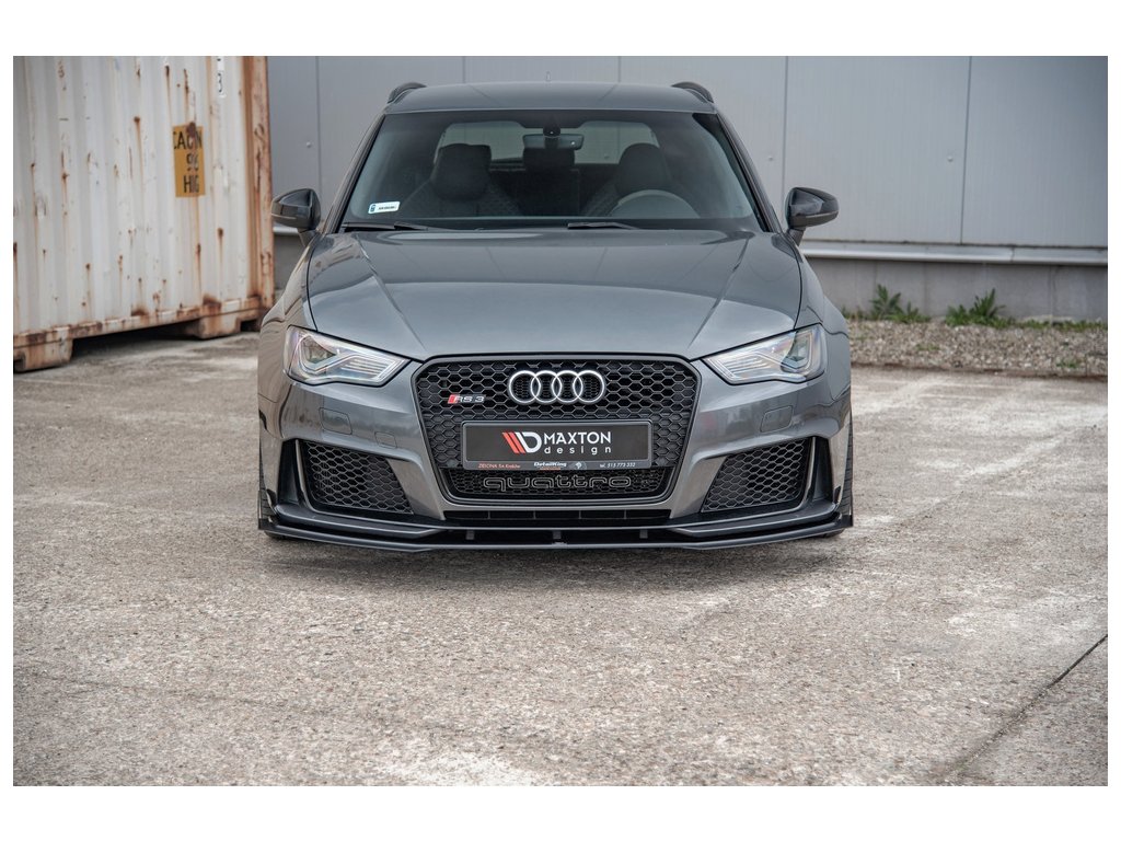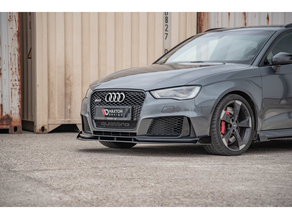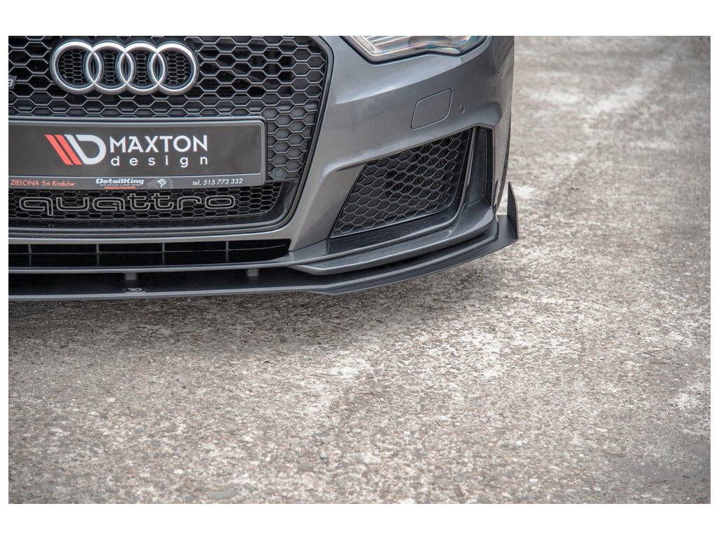 Maxton Design "Racing durability" spoiler pod přední nárazník s rohovými splittery pro vozidlo Audi RS3 8V . Povrchová úprava spoileru plast ABS bez povrchové úpravy.