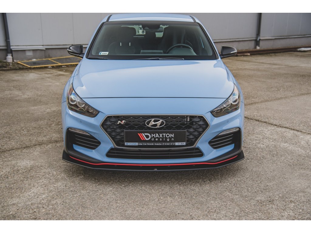 Maxton Design "Racing durability" spoiler pod přední nárazník s rohovými splittery pro vozidlo Hyundai i30 N Mk3 . Povrchová úprava spoileru černý lesklý plast ABS.