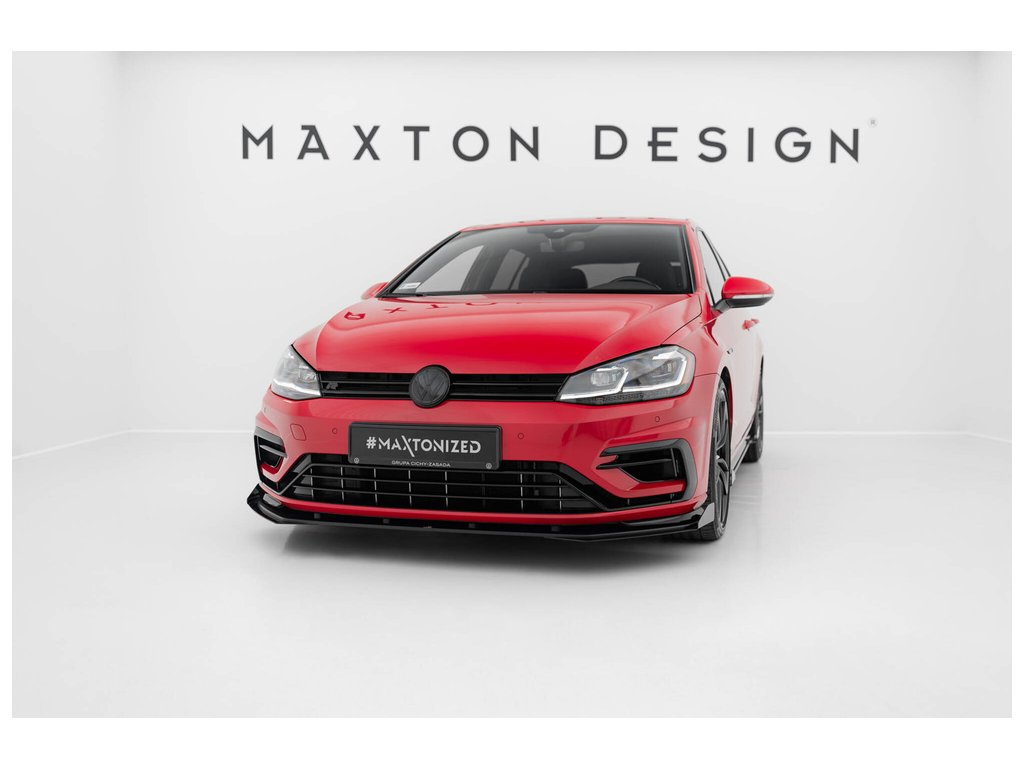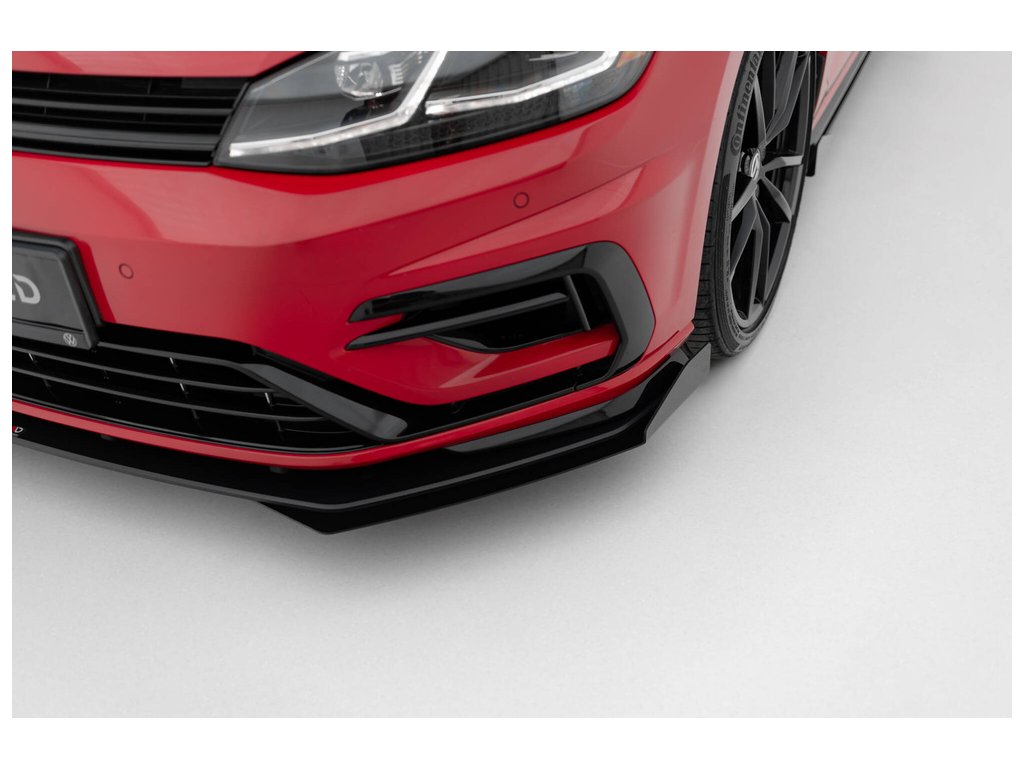 Maxton Design "Racing durability" spoiler pod přední nárazník s rohovými splittery pro vozidlo Volkswagen Golf R Mk7 Facelift . Povrchová úprava spoileru plast ABS bez povrchové úpravy.