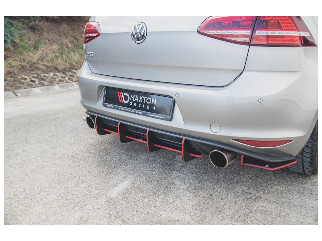 Maxton Design "Racing durability" zadní difuzor ver.1 pro Volkswagen Golf GTI Mk7, plast ABS bez povrchové úpravy, s červenou linkou