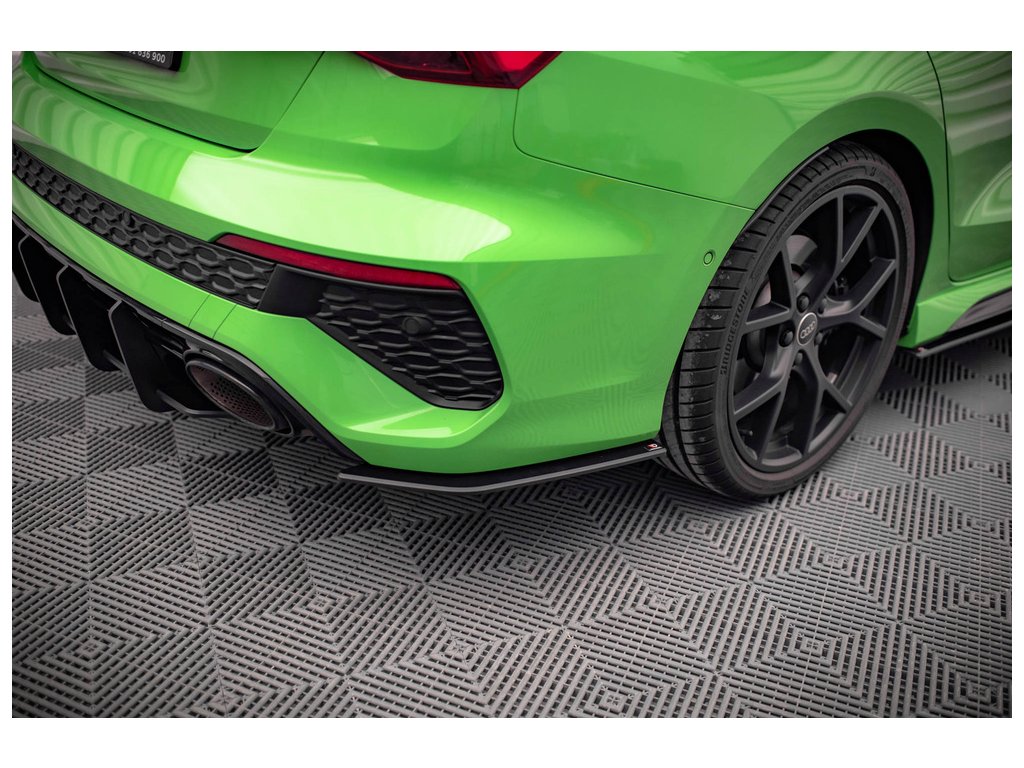 Maxton Design "Street Pro" boční difuzory pod zadní nárazník pro vozidlo Audi RS3 8Y . Povrchová úprava spoileru plast ABS bez povrchové úpravy.