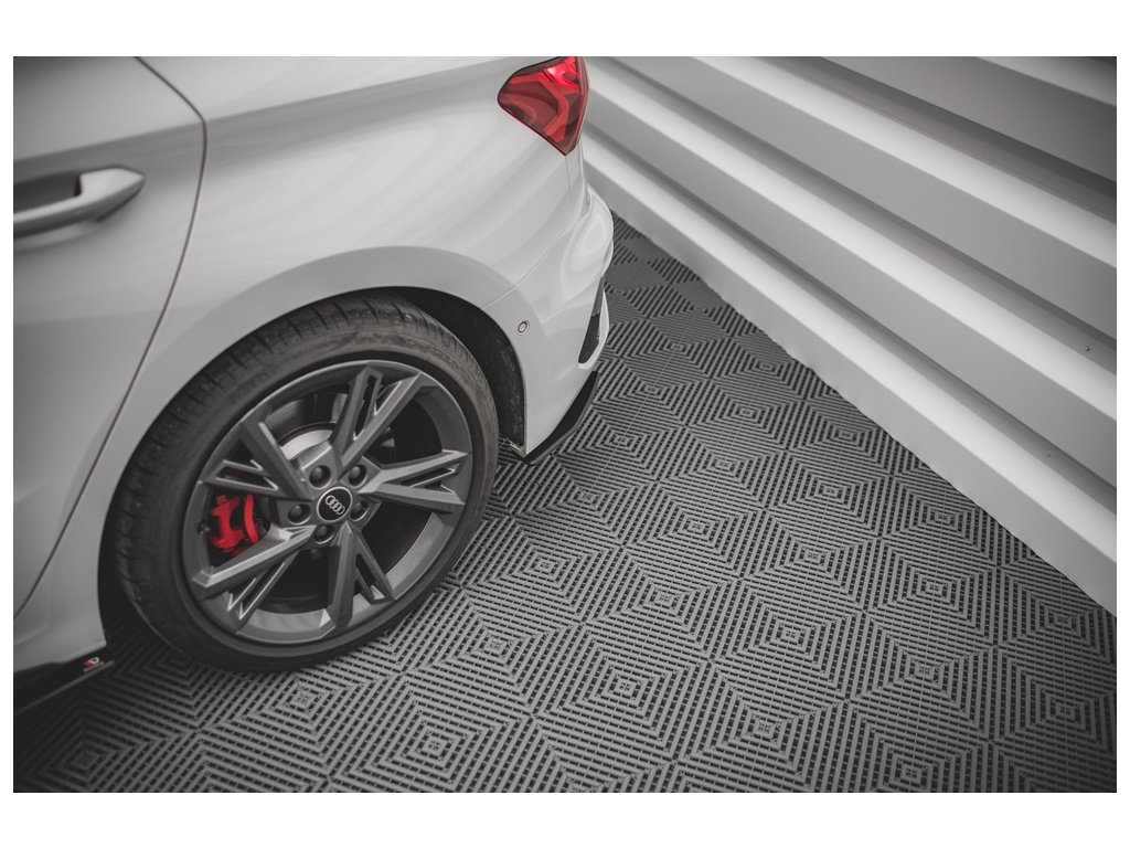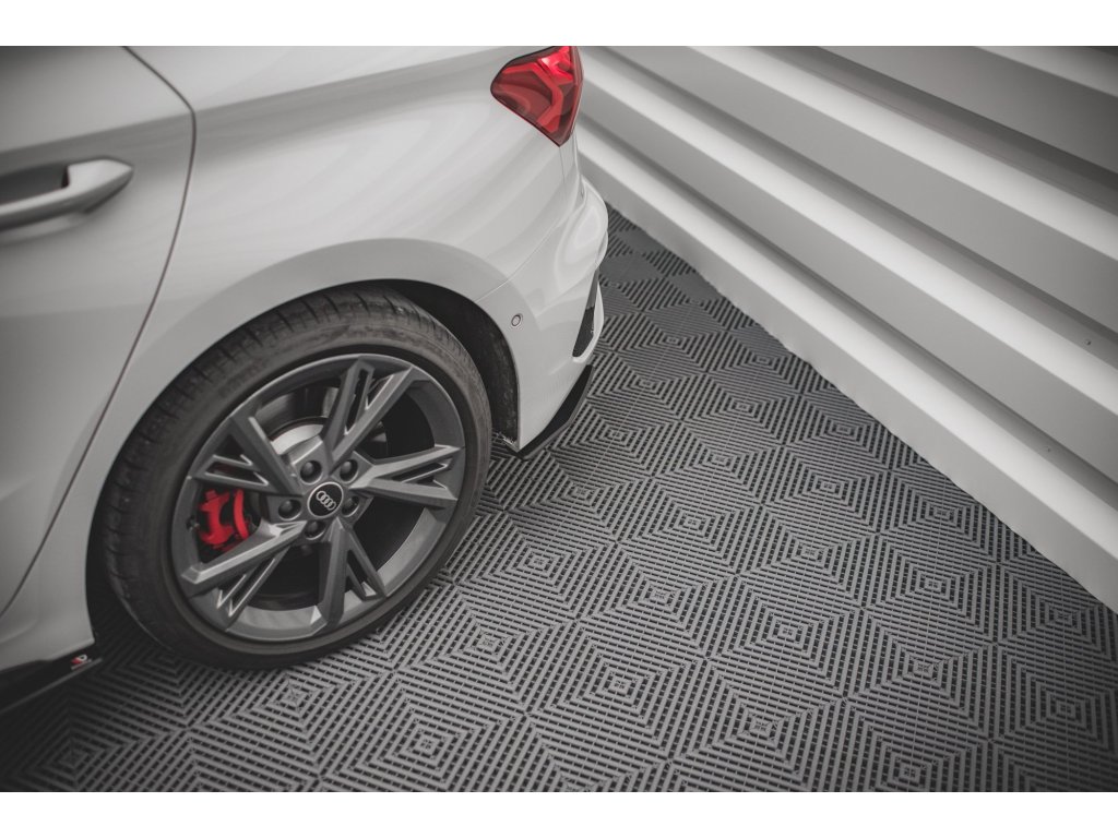 Maxton Design "Street Pro" boční difuzory pod zadní nárazník pro vozidlo Audi S3 8Y . Povrchová úprava spoileru plast ABS bez povrchové úpravy.