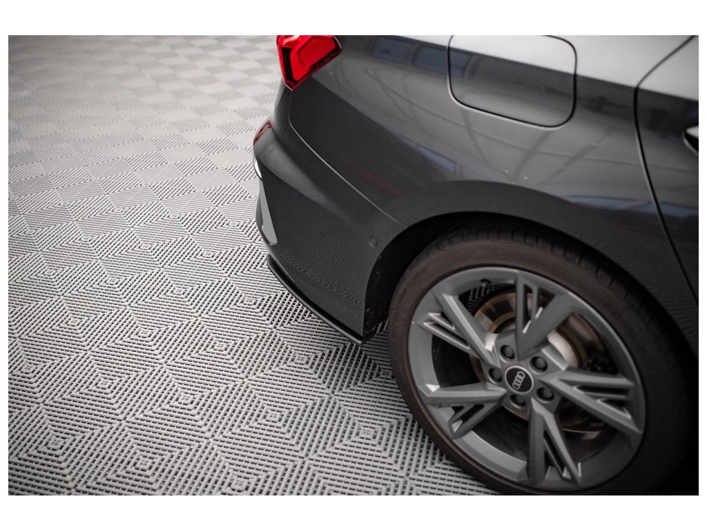 Maxton Design "Street Pro" boční difuzory pod zadní nárazník pro vozidlo Audi S3 8Y Sedan . Povrchová úprava spoileru plast ABS bez povrchové úpravy.