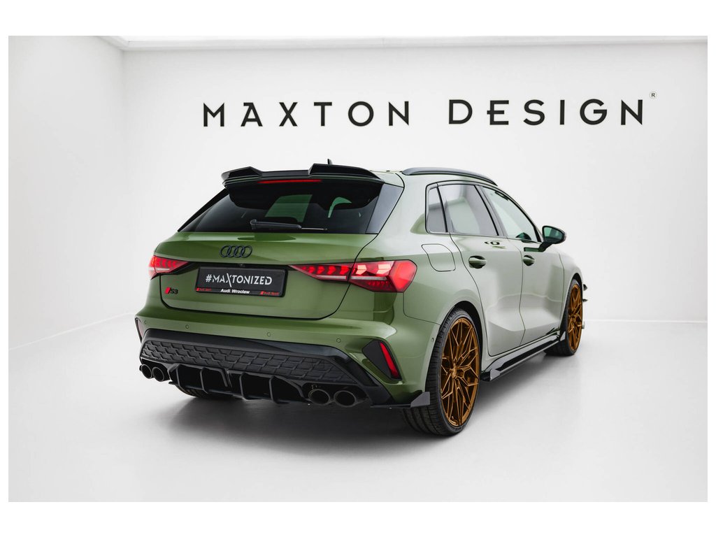 Maxton Design "Street Pro" boční difuzory pod zadní nárazník s křidélky pro vozidlo Audi S3 8Y Facelift . Povrchová úprava spoileru plast ABS bez povrchové úpravy.