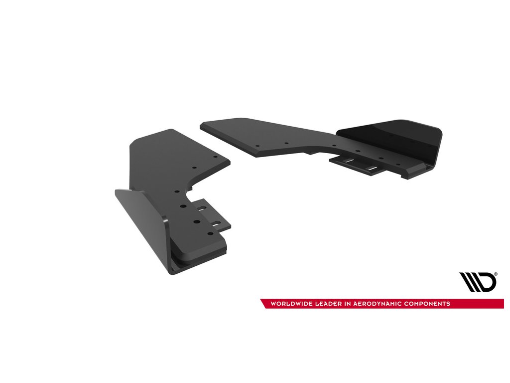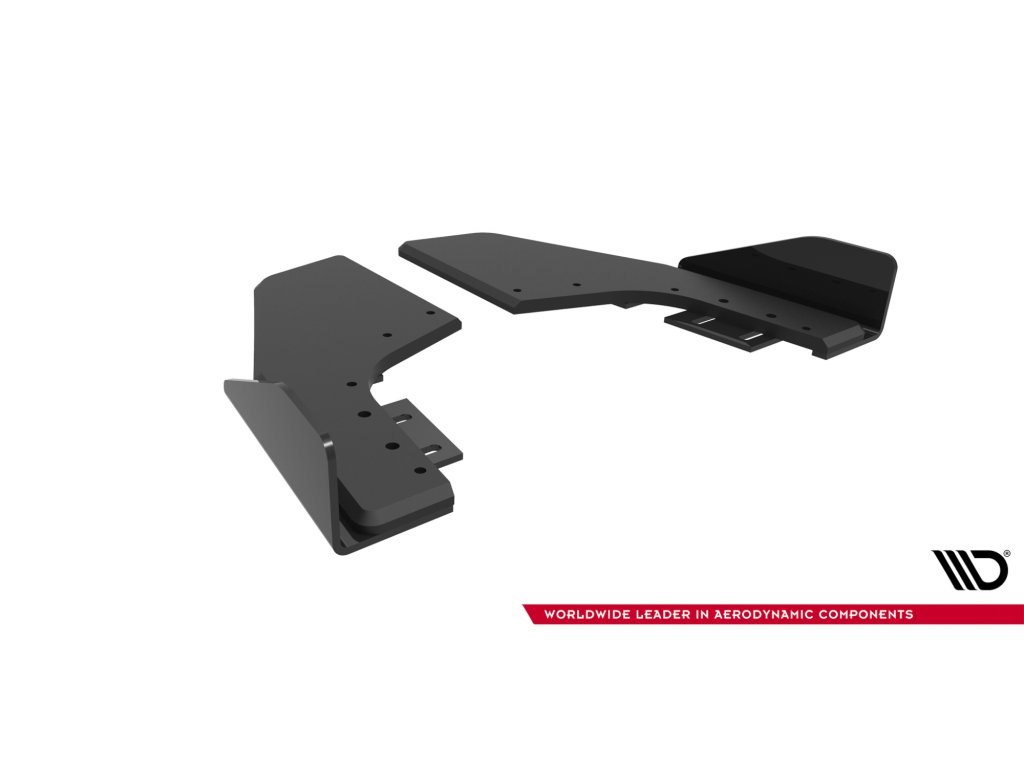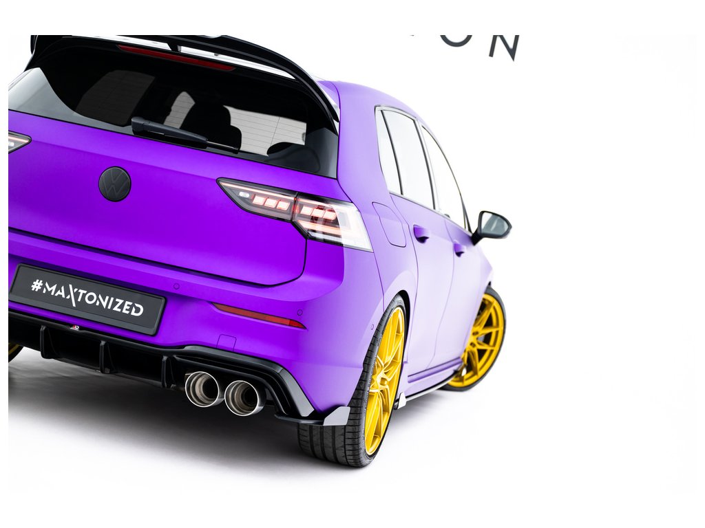 Maxton Design "Street Pro" boční difuzory pod zadní nárazník s křidélky ver.2 pro vozidlo Volkswagen Golf R Mk8, Mk8 Facelift . Povrchová úprava spoileru plast ABS bez povrchové úpravy.