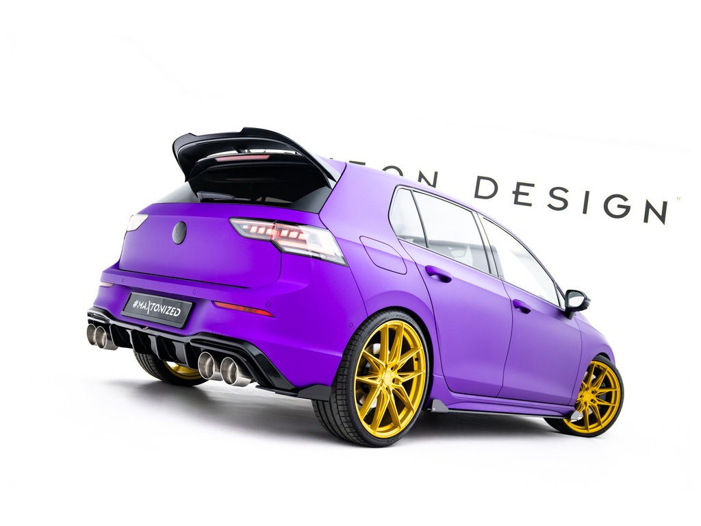 Maxton Design "Street Pro" boční difuzory pod zadní nárazník s křidélky ver.2 pro vozidlo Volkswagen Golf R Mk8, Mk8 Facelift . Povrchová úprava spoileru plast ABS bez povrchové úpravy.