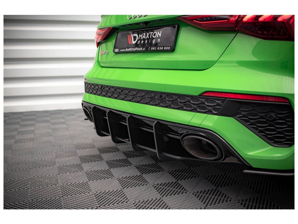Maxton Design "Street Pro" difuzor zadního nárazníku pro vozidlo Audi RS3 8Y . Povrchová úprava spoileru plast ABS bez povrchové úpravy.
