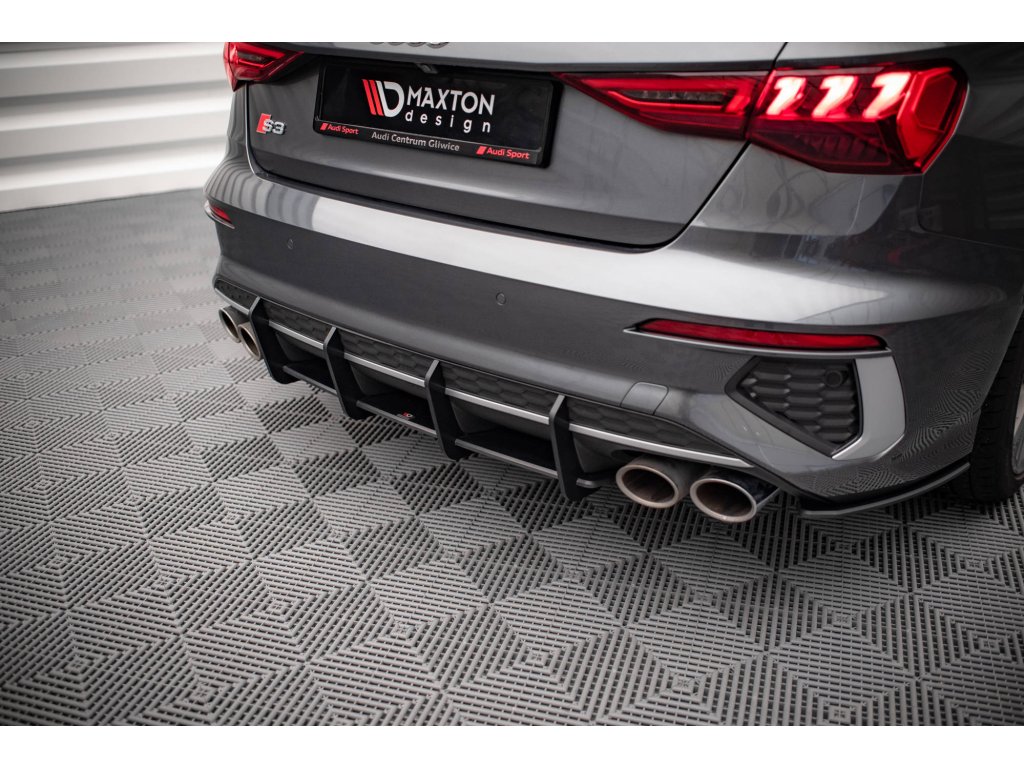 Maxton Design "Street Pro" difuzor zadního nárazníku pro vozidlo Audi S3 8Y Sedan . Povrchová úprava spoileru plast ABS bez povrchové úpravy.