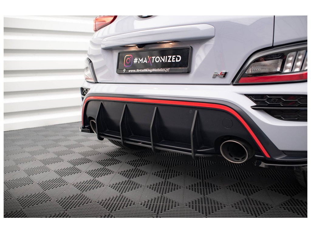 Maxton Design "Street Pro" difuzor zadního nárazníku pro vozidlo Hyundai Kona N Mk1 . Povrchová úprava spoileru plast ABS bez povrchové úpravy.