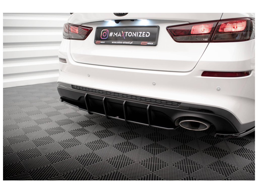 Maxton Design "Street Pro" difuzor zadního nárazníku pro vozidlo Kia Optima Mk4 Facelift . Povrchová úprava spoileru plast ABS bez povrchové úpravy.