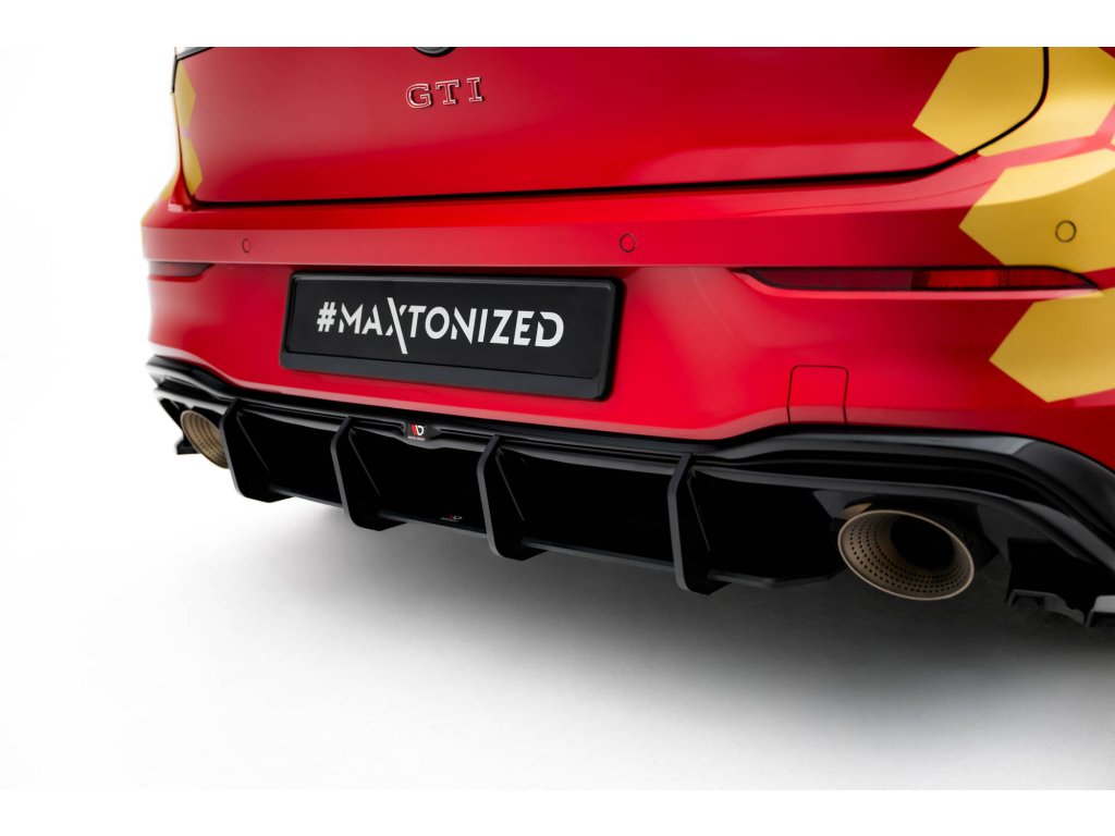 Maxton Design "Street Pro" difuzor zadního nárazníku v.1 pro vozidlo Volkswagen Golf GTI Mk8 Facelift . Povrchová úprava spoileru černý lesklý plast ABS.