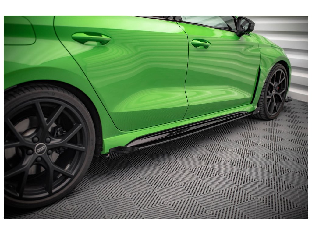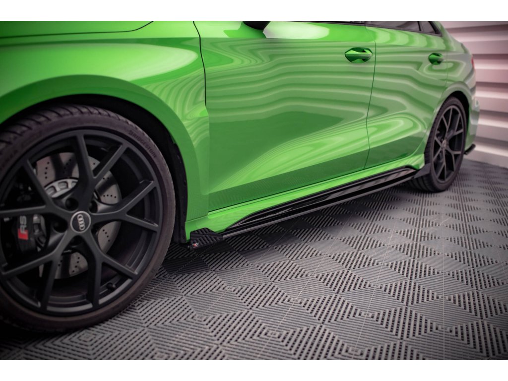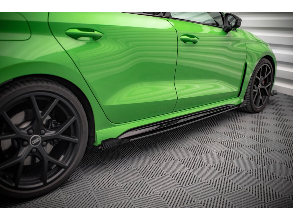 Maxton Design "Street Pro" difuzory pod boční prahy s křidélky pro vozidlo Audi RS3 8Y . Povrchová úprava spoileru plast ABS bez povrchové úpravy.
