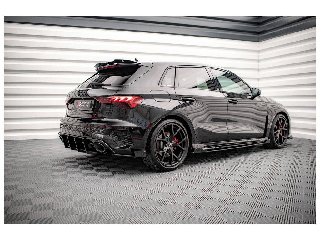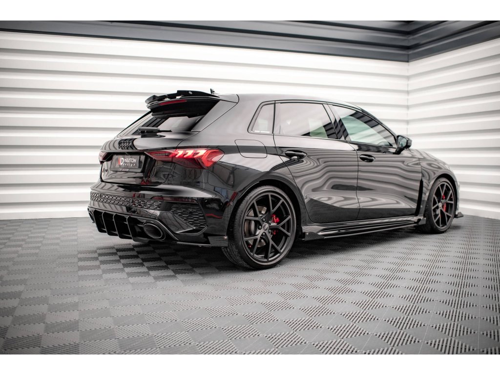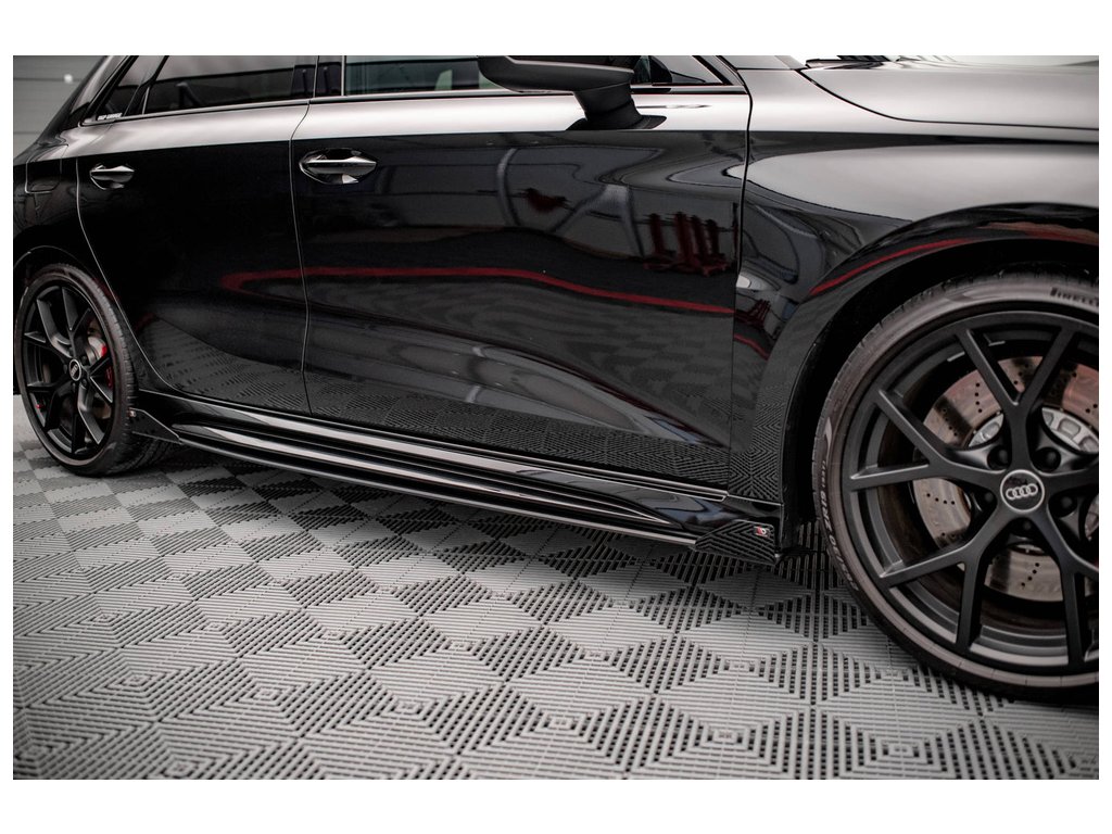 Maxton Design "Street Pro" difuzory pod boční prahy s křidélky pro vozidlo Audi RS3 8Y . Povrchová úprava spoileru plast ABS bez povrchové úpravy.