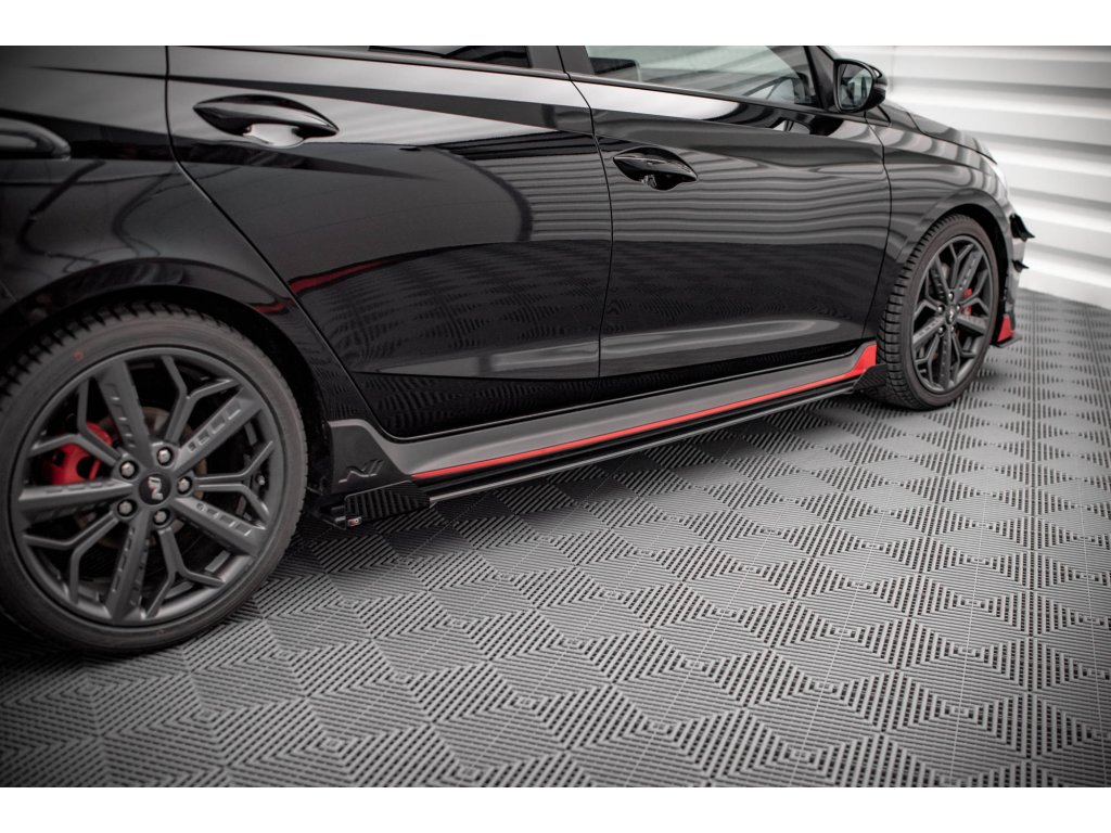 Maxton Design "Street Pro" difuzory pod boční prahy s křidélky pro vozidlo Hyundai i20 N Mk3 . Povrchová úprava spoileru plast ABS bez povrchové úpravy.