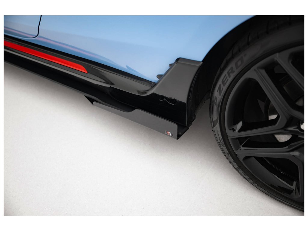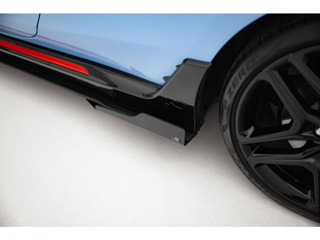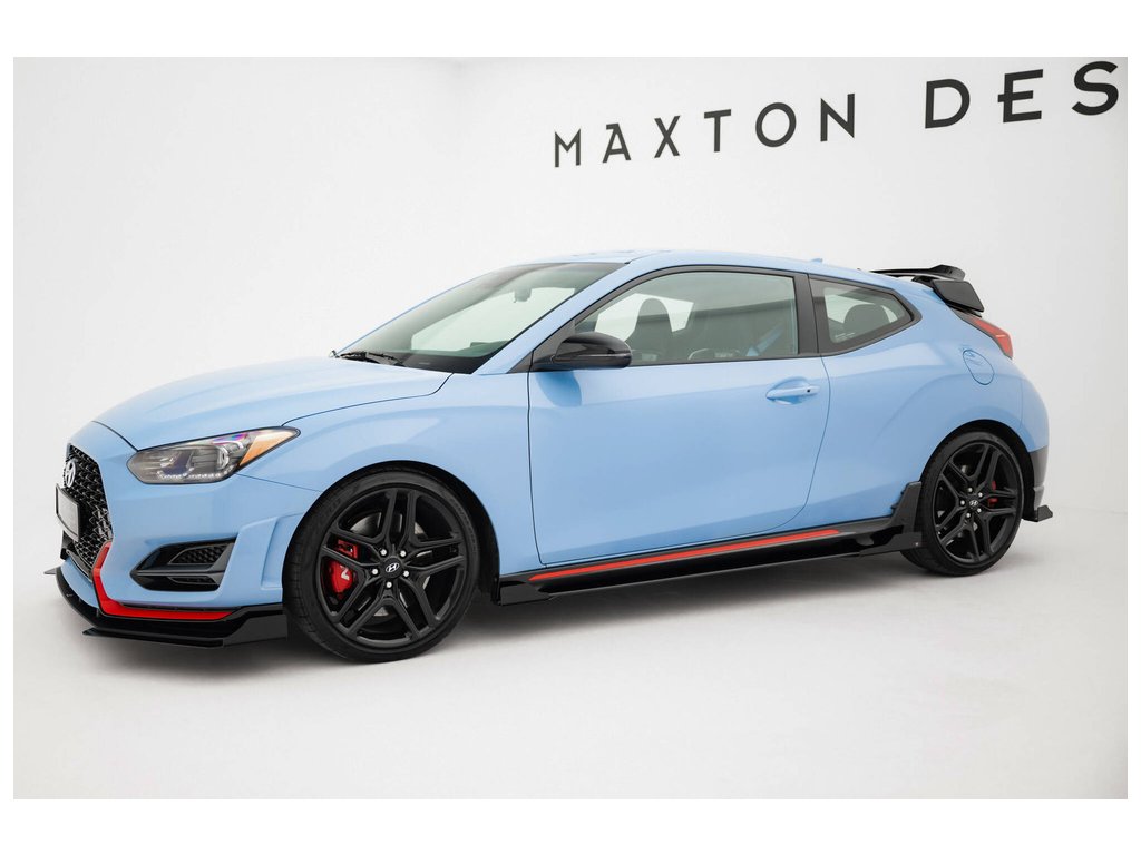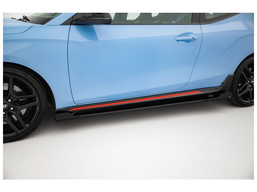 Maxton Design "Street Pro" difuzory pod boční prahy s křidélky pro vozidlo Hyundai Veloster N Mk2 . Povrchová úprava spoileru černý lesklý plast ABS.