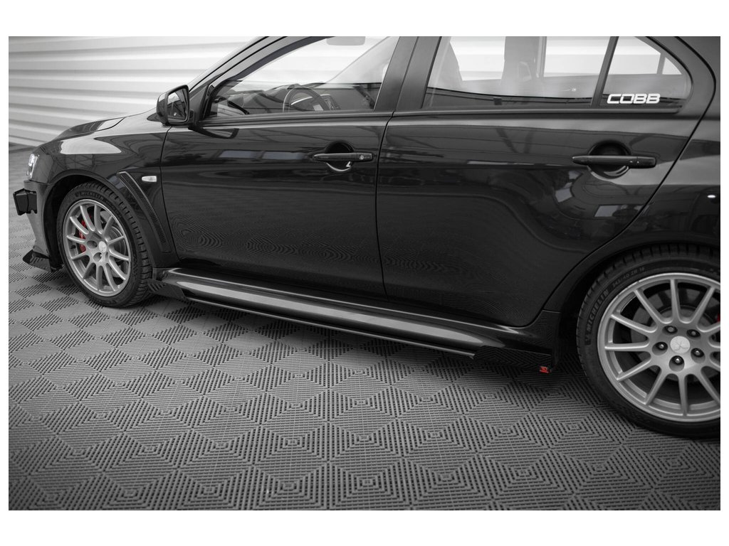 Maxton Design "Street Pro" difuzory pod boční prahy s křidélky pro Mitsubishi Lancer Evo Mk10, plast ABS bez povrchové úpravy, s černou a červenou linkou