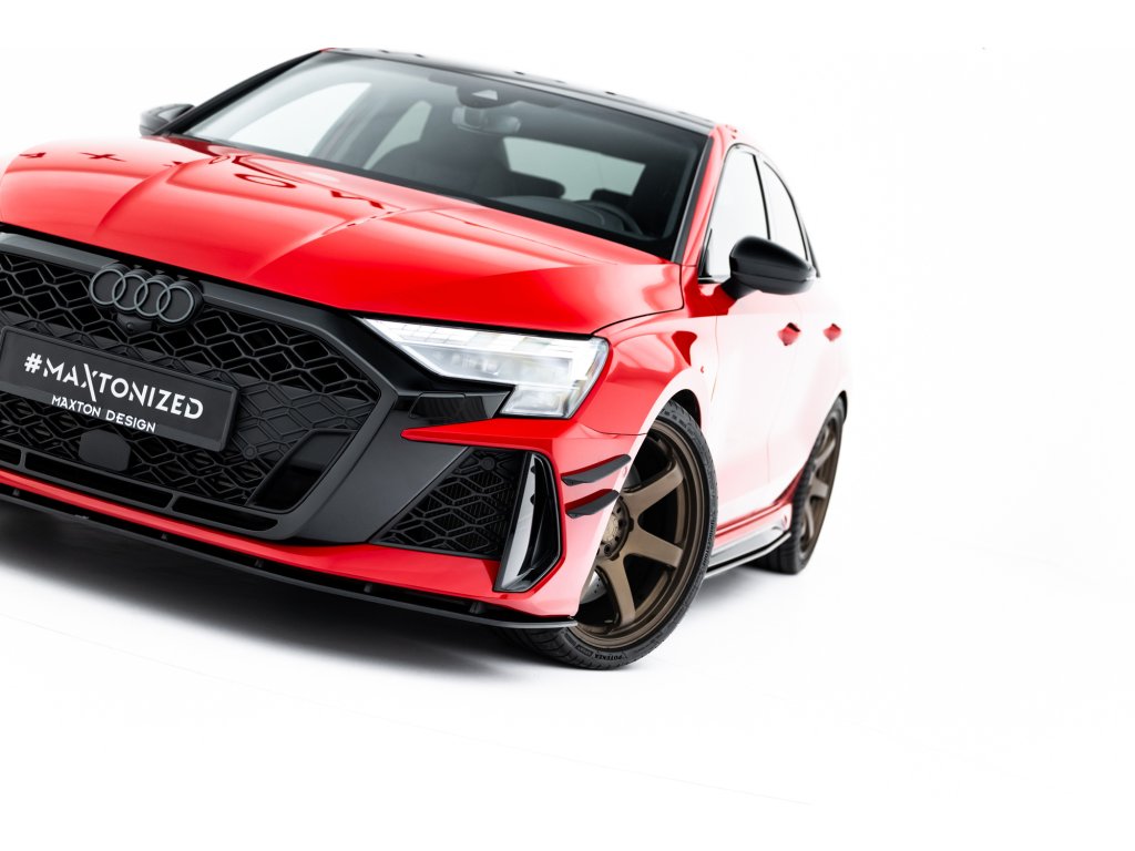 Maxton Design "Street Pro" spoiler pod přední nárazník pro vozidlo Audi RS3 8Y Facelift . Povrchová úprava spoileru plast ABS bez povrchové úpravy.