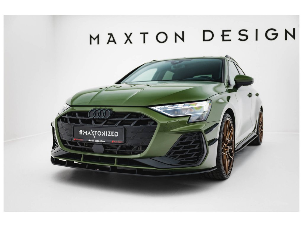 Maxton Design "Street Pro" spoiler pod přední nárazník pro vozidlo Audi S3 8Y Facelift . Povrchová úprava spoileru plast ABS bez povrchové úpravy.