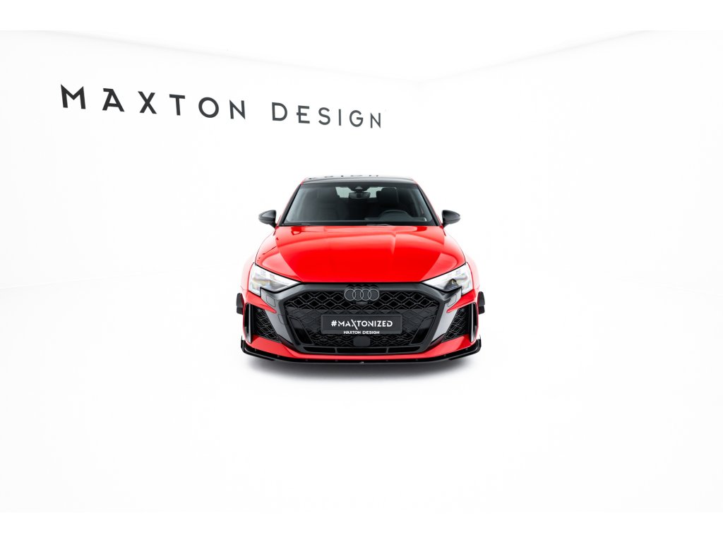 Maxton Design "Street Pro" spoiler pod přední nárazník s křidélky pro vozidlo Audi RS3 8Y Facelift . Povrchová úprava spoileru plast ABS bez povrchové úpravy.