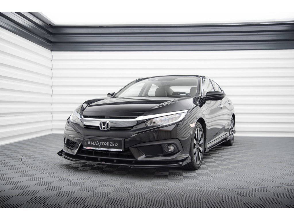 Maxton Design "Street Pro" spoiler pod přední nárazník s křidélky pro vozidlo Honda Civic Mk10 . Povrchová úprava spoileru plast ABS bez povrchové úpravy.