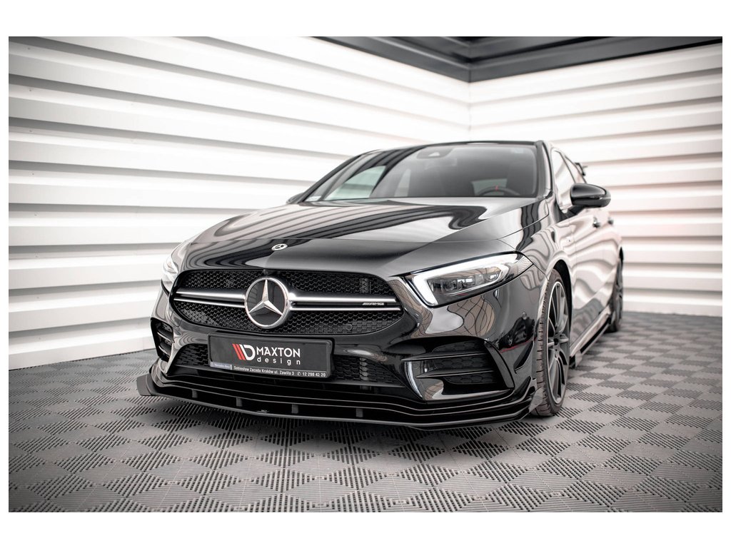 Maxton Design "Street Pro" spoiler pod přední nárazník s křidélky pro Mercedes třída A W177 A35 AMG Aero, W177 AMG-Line Aero, plast ABS bez povrchové úpravy