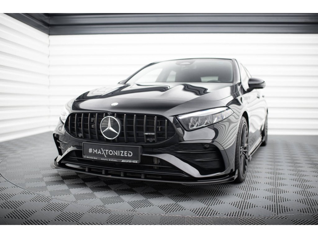 Maxton Design "Street Pro" spoiler pod přední nárazník s křidélky pro vozidlo Mercedes třída A W177 Facelift A35 AMG . Povrchová úprava spoileru plast ABS bez povrchové úpravy.