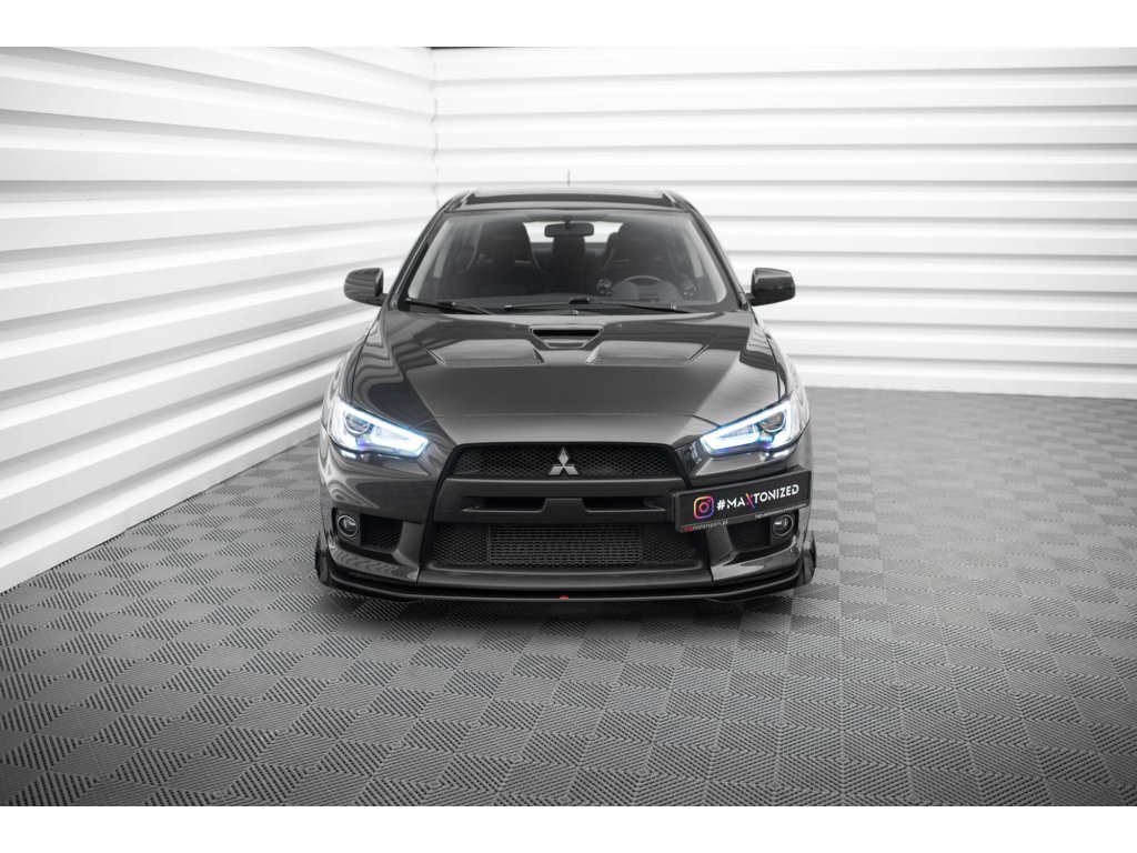Maxton Design "Street Pro" spoiler pod přední nárazník s křidélky pro vozidlo Mitsubishi Lancer Evo Mk10 . Povrchová úprava spoileru plast ABS bez povrchové úpravy.