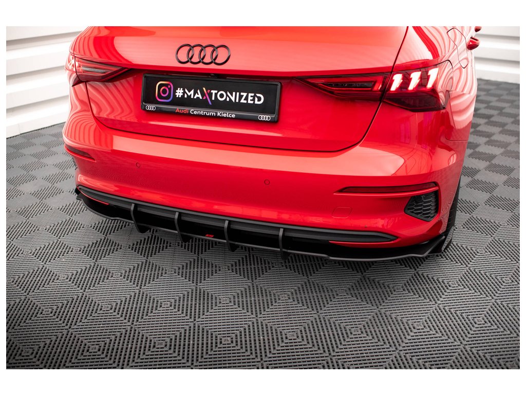 Maxton Design "Street pro" vložka zadního nárazníku s křidélky pro vozidlo Audi A3 8Y . Povrchová úprava spoileru plast ABS bez povrchové úpravy.