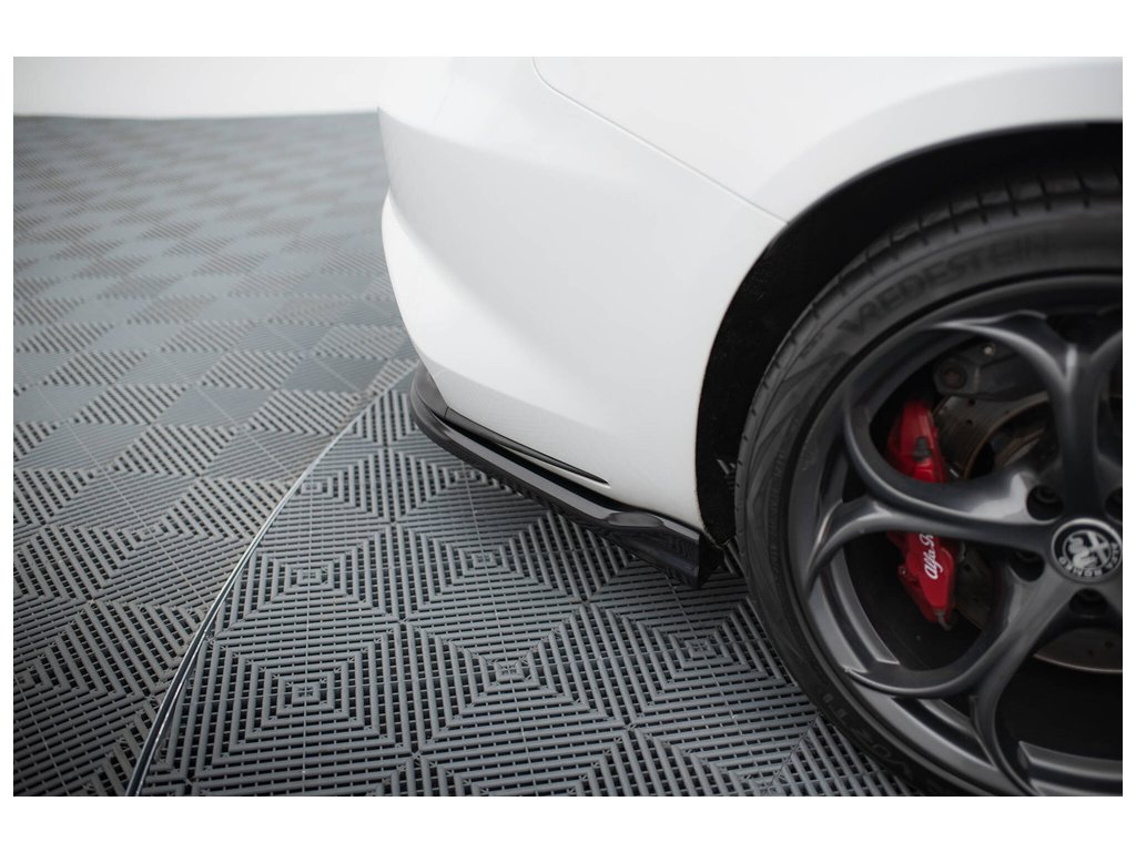 Maxton Design boční difuzory pod zadní nárazník pro vozidlo Alfa Romeo Giulia Qaudrifoglio . Povrchová úprava spoileru černý lesklý plast ABS.