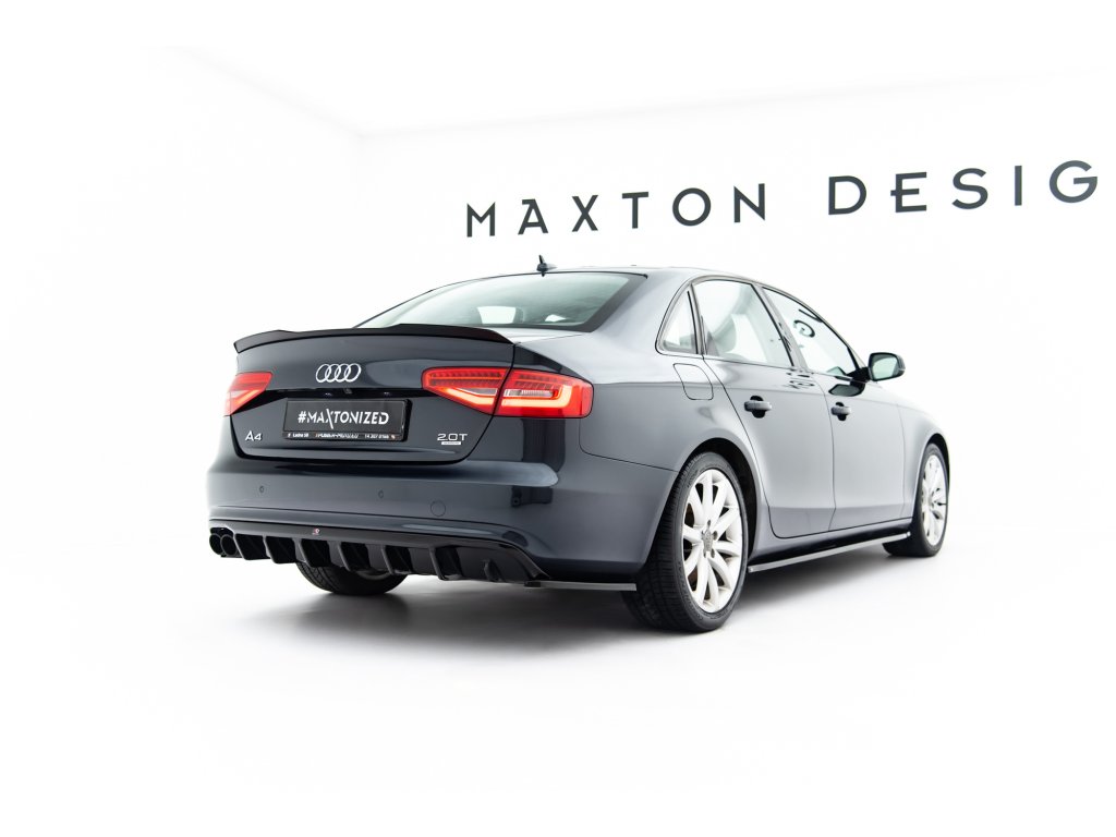 Maxton Design boční difuzory pod zadní nárazník pro vozidlo Audi A4 B8 FL . Povrchová úprava spoileru černý lesklý plast ABS.