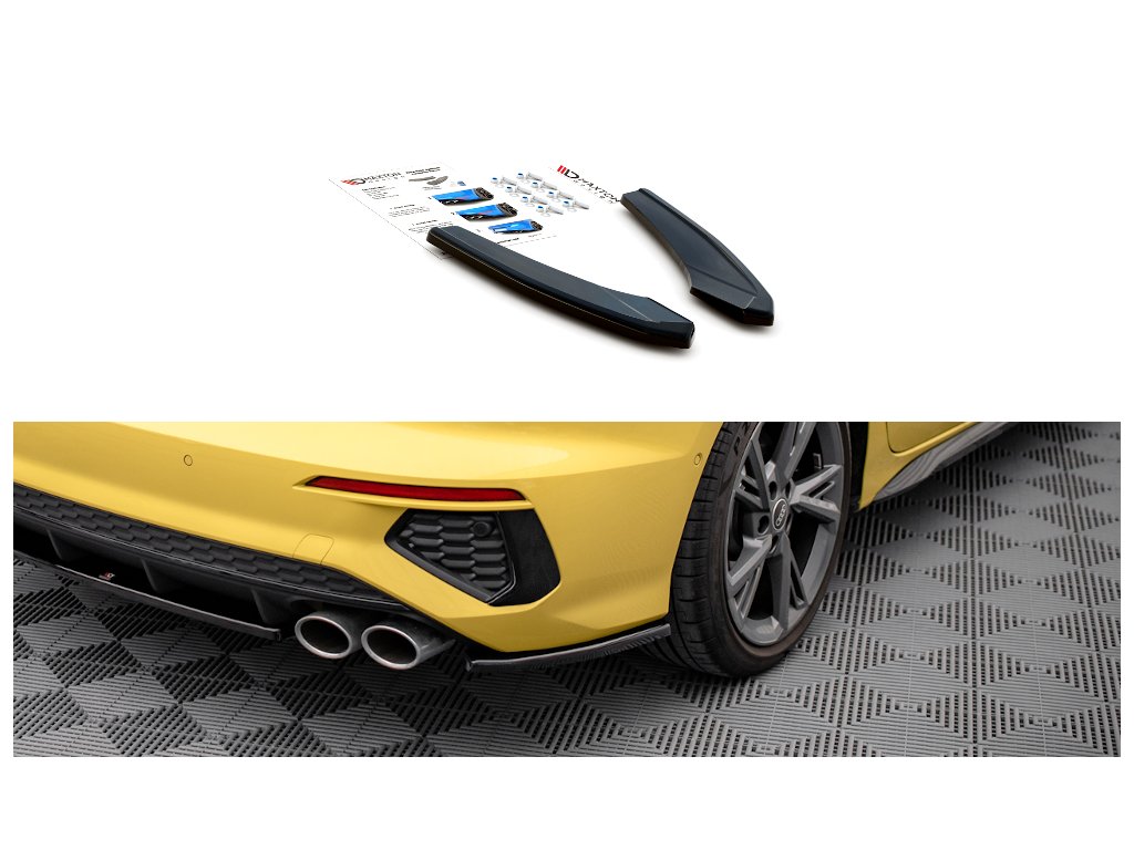 Maxton Design boční difuzory pod zadní nárazník pro vozidlo Audi S3 8Y Sedan . Povrchová úprava spoileru carbon-Look.