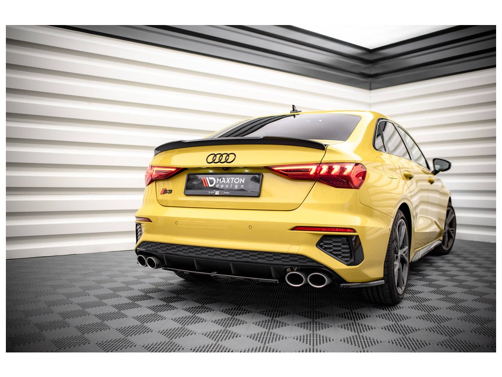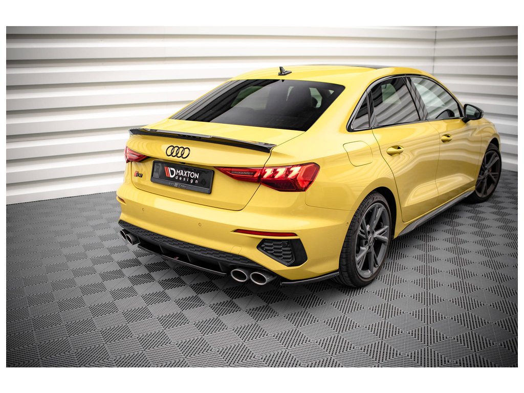 Boční spoilery zadního nárazníku Audi S3 Sedan 8Y, povrchová úprava černý lesklý plast ABS.