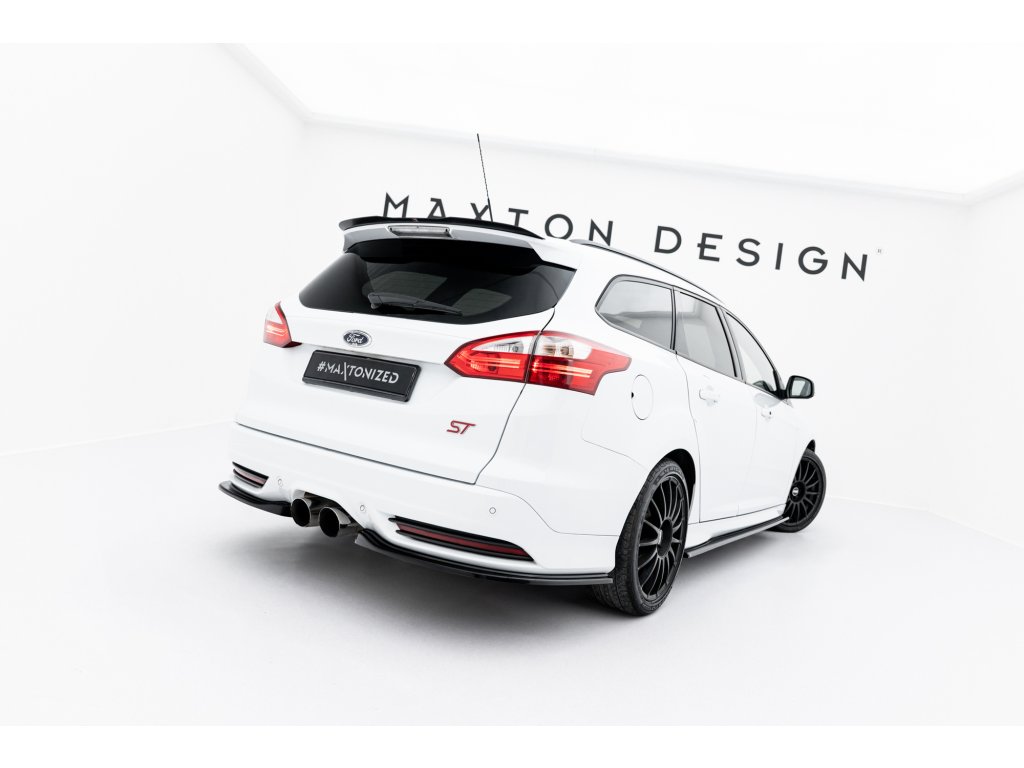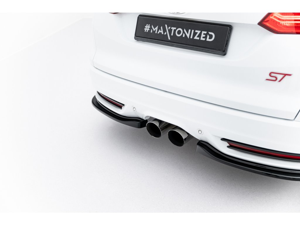 Maxton Design boční difuzory pod zadní nárazník pro vozidlo Ford Focus ST Mk3 . Povrchová úprava spoileru černý lesklý plast ABS.