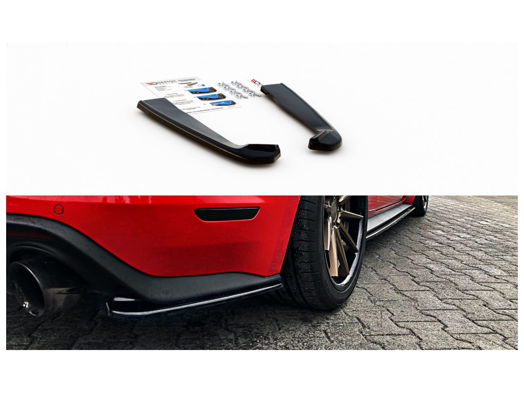 Maxton Design boční difuzory pod zadní nárazník pro vozidlo Ford Mustang Mk 6 Facelift . Povrchová úprava spoileru carbon-Look.