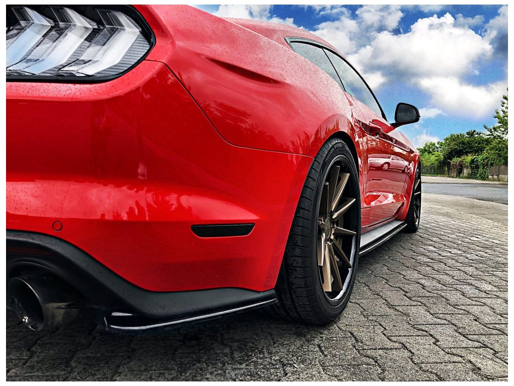 Boční spoilery zadního nárazníku Ford Mustang Mk. 6 Facelift, povrchová úprava černý lesklý plast ABS.