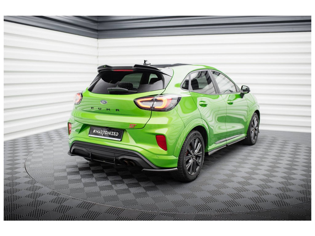 Maxton Design boční difuzory pod zadní nárazník pro vozidlo Ford Puma ST . Povrchová úprava spoileru černý lesklý plast ABS.