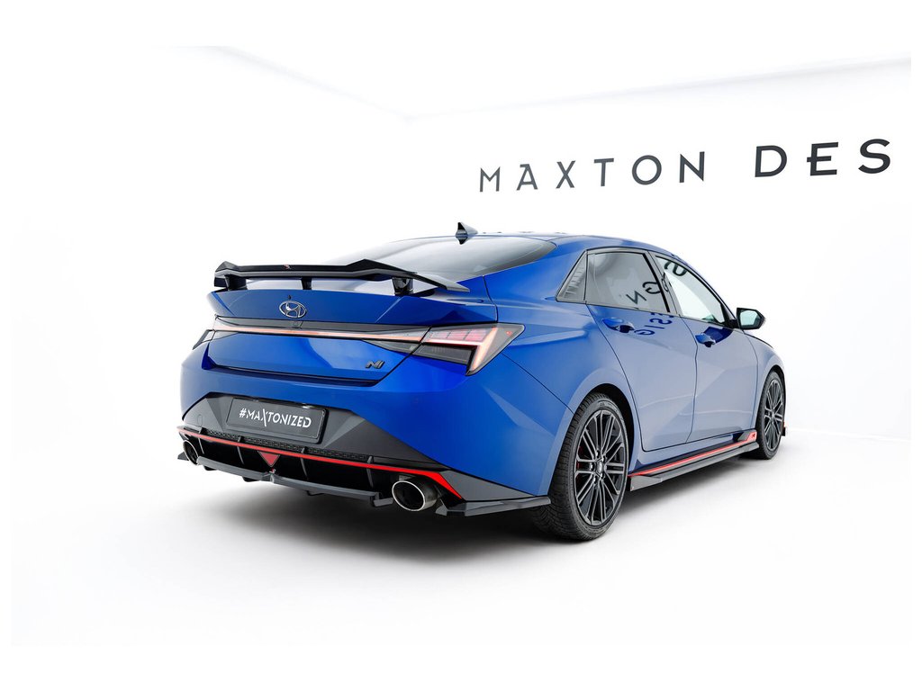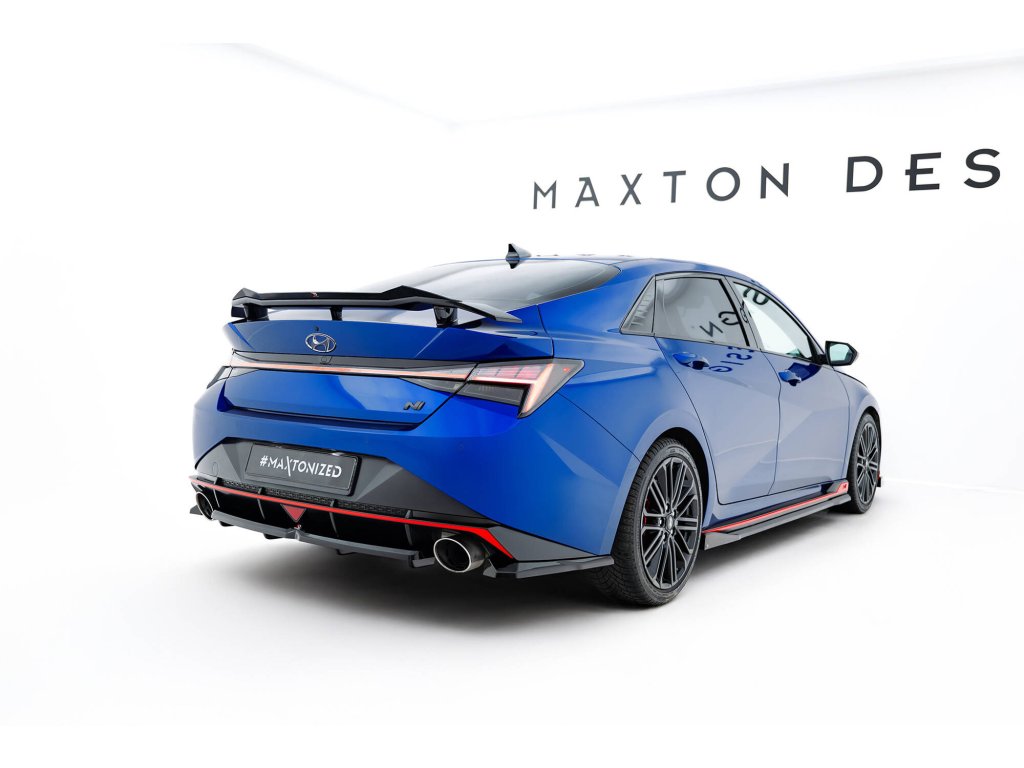 Maxton Design boční difuzory pod zadní nárazník pro vozidlo Hyundai Elantra N Mk7 . Povrchová úprava spoileru černý lesklý plast ABS.