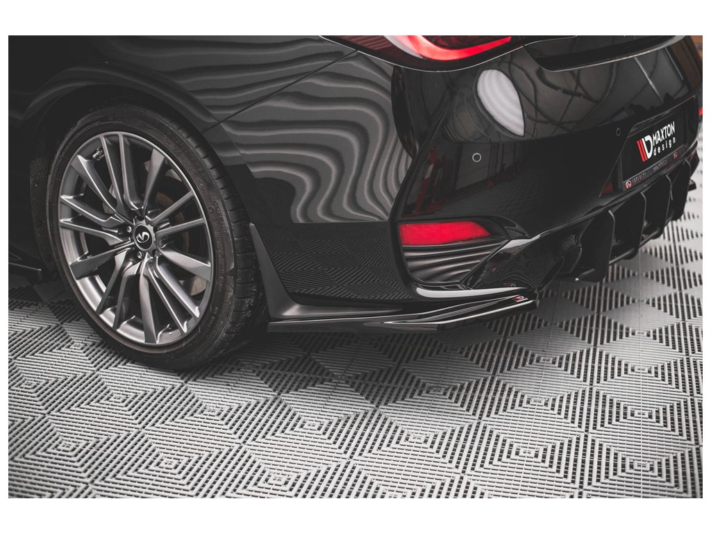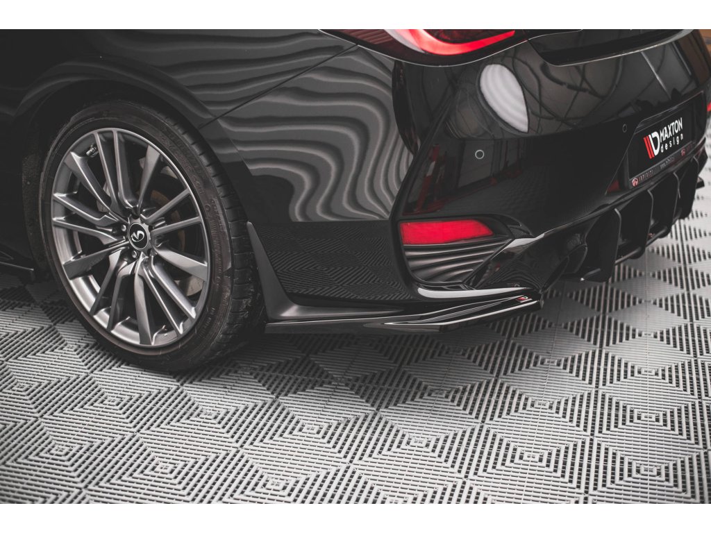 Maxton Design boční difuzory pod zadní nárazník pro vozidlo Infiniti Q60 Mk2 . Povrchová úprava spoileru černý lesklý plast ABS.