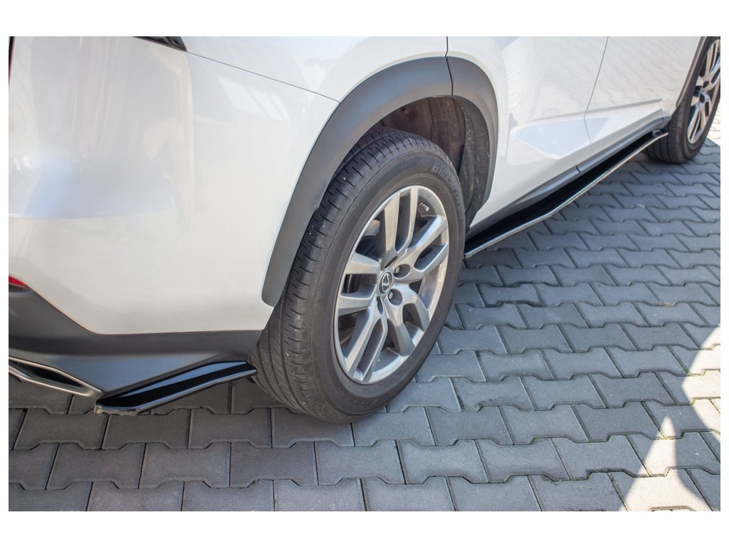 Maxton Design boční difuzory pod zadní nárazník pro vozidlo Lexus NX Mk1 Facelift . Povrchová úprava spoileru černý lesklý plast ABS.