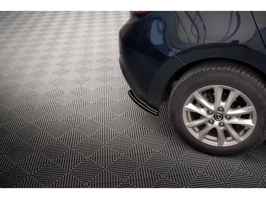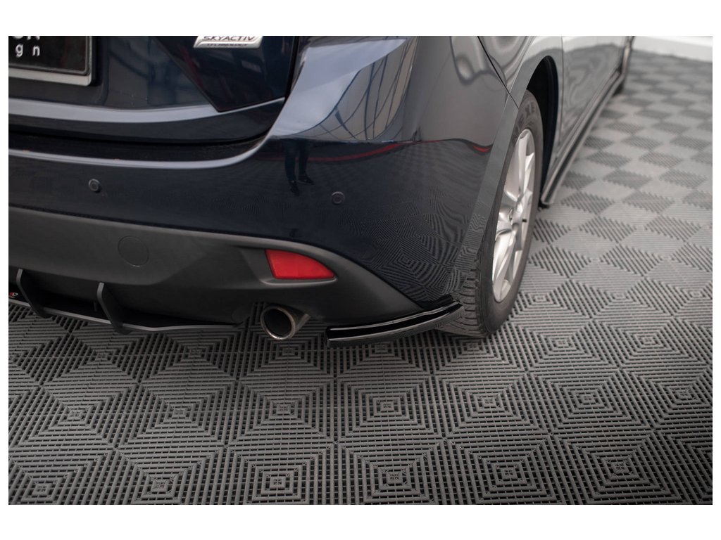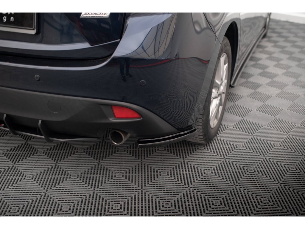 Maxton Design boční difuzory pod zadní nárazník pro vozidlo Mazda 3 Mk3 . Povrchová úprava spoileru černý lesklý plast ABS.