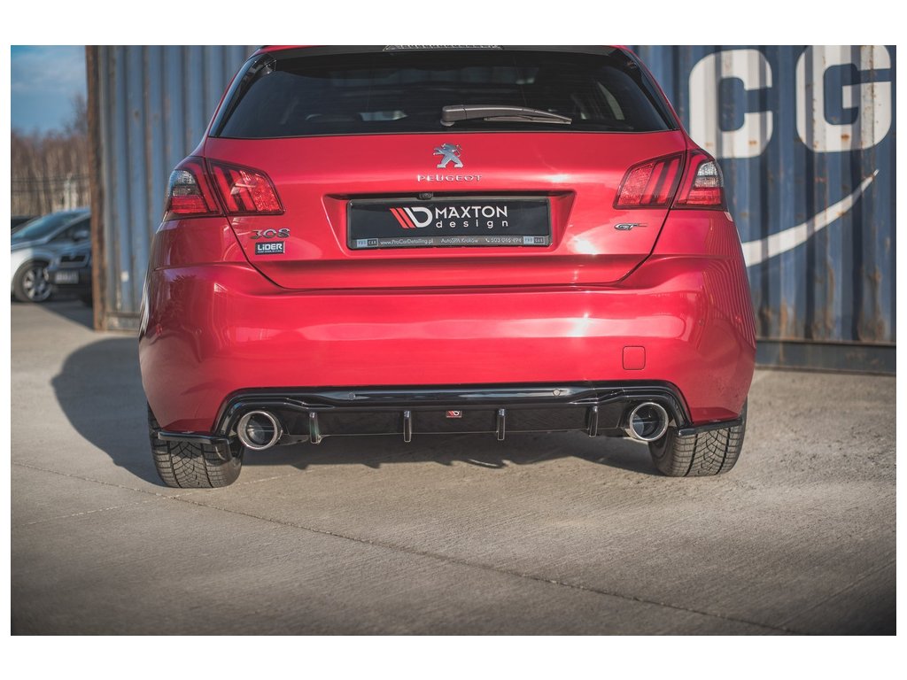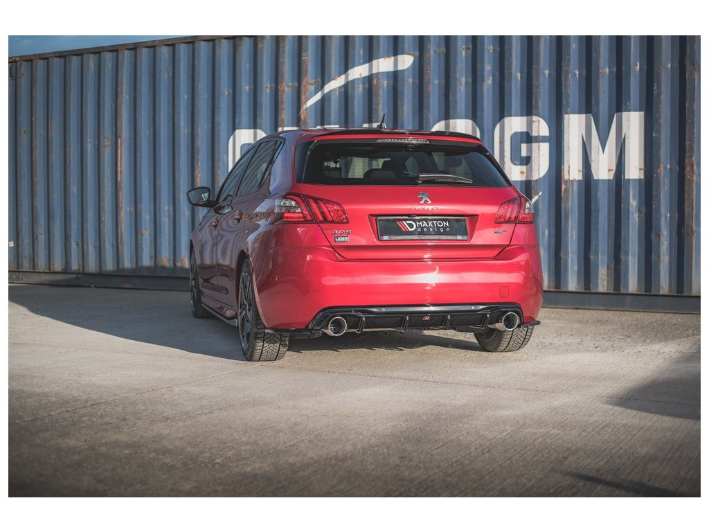 Maxton Design boční difuzory pod zadní nárazník pro vozidlo Peugeot 308 GT Mk Facelift . Povrchová úprava spoileru černý lesklý plast ABS.