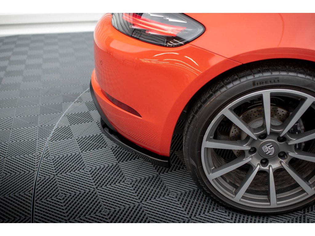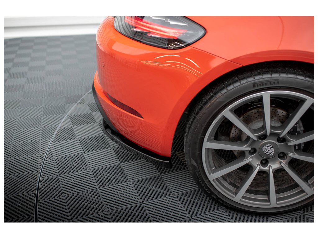 Maxton Design boční difuzory pod zadní nárazník pro vozidlo Porsche Cayman 982c . Povrchová úprava spoileru černý lesklý plast ABS.