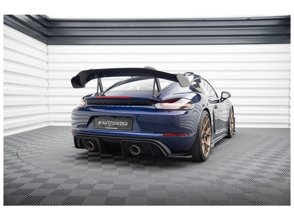 Maxton Design boční difuzory pod zadní nárazník pro vozidlo Porsche Cayman GT4 RS 982c . Povrchová úprava spoileru černý lesklý plast ABS.