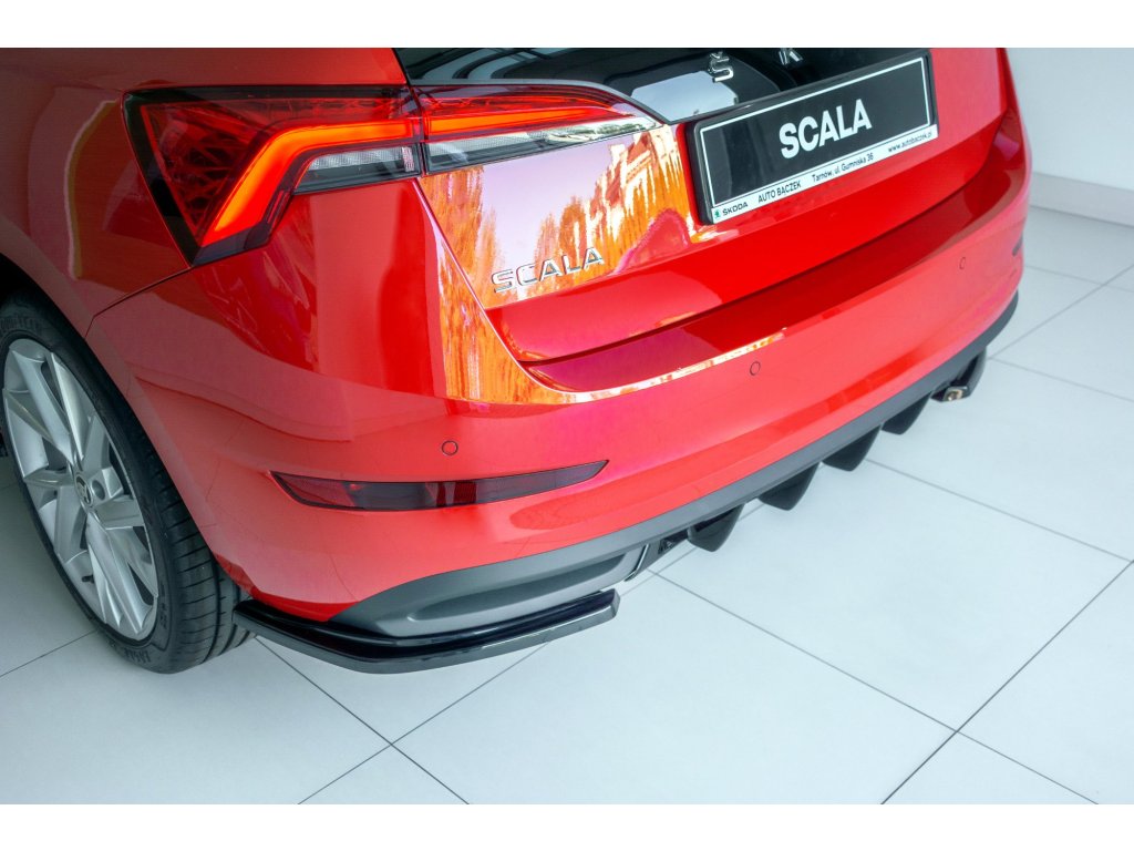 Maxton Design boční difuzory pod zadní nárazník pro vozidlo Škoda Scala . Povrchová úprava spoileru carbon-Look.